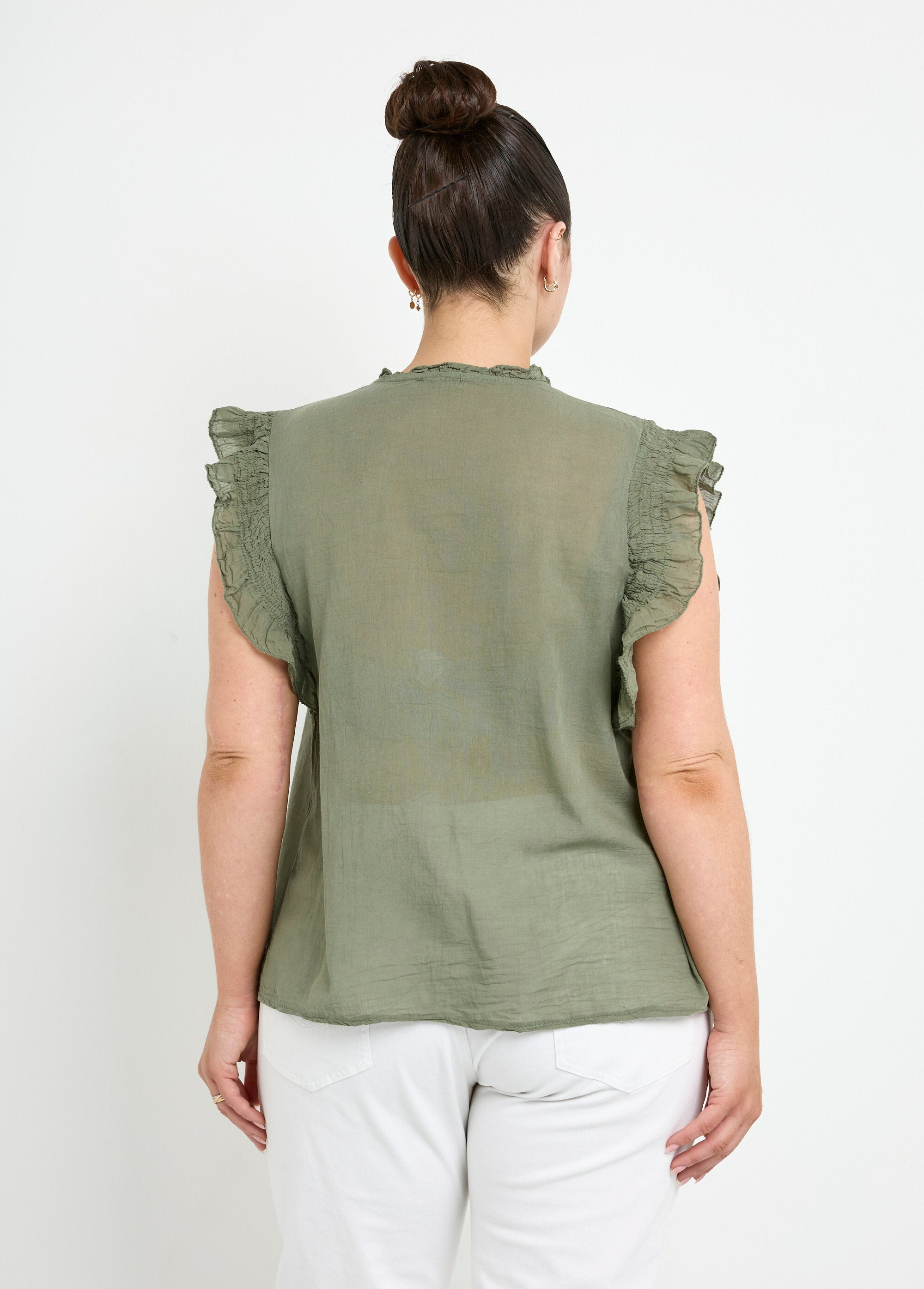 Blusa_de_voile_de_algodón_sin_mangas_Caqui_FA1_curvy Blusa_de_voile_de_algodón_sin_mangas_Caqui_DO1_curvy